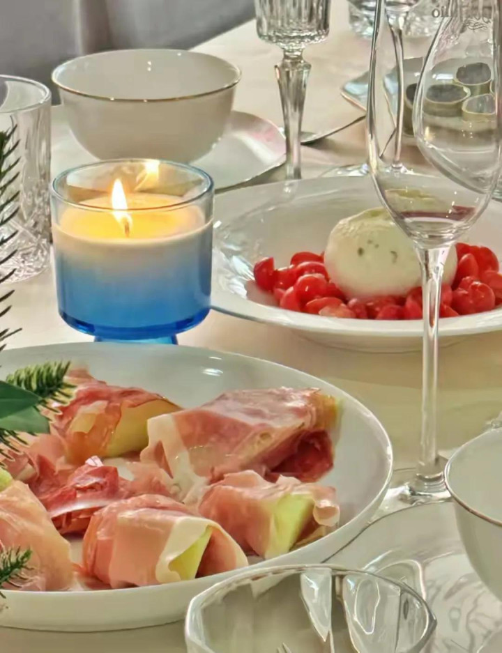 通过视频能够看到,餐桌上不仅有样式繁复的插花,还有位置合宜的红酒和香薰,再搭配那些精致养眼的餐具,场面完全不输米其林三星餐厅,难怪朱珠和老公既没有点外卖,也没有带朋友去外面吃。