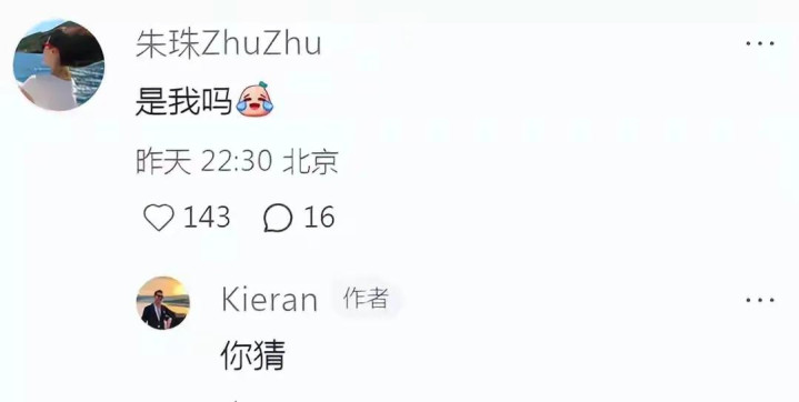 朱珠大概率是一个十指不沾阳春水的人,有着自知之明的她,面对老公的喊话,在评论区问老公,说的是我么?